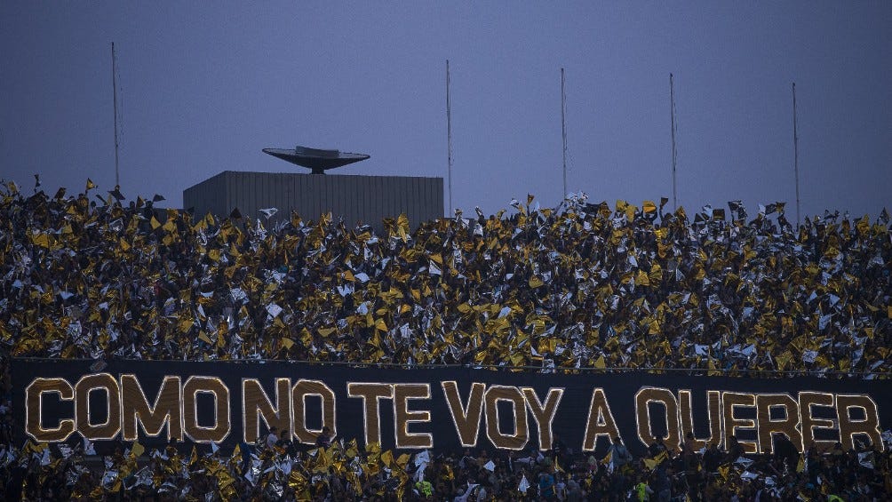 En todo esto pensaba mientras las manecillas del reloj corrían con la misma hueva con la que corre el jugador promedio de la liga mexicana, la tensión previa al partido crecía y crecía, hasta que de repente, la hora del partido estaba ya tan cerca que la tensión estalló y todos nos reímos de lo estúpido que era todo esto, a fin de cuentas era sólo futbol y no había necesidad de sufrir por un pinche partido de la Liga MX. La Rebel empezó a gritar y a cantar y a loquear desde su hogar privilegiado junto al pebetero y desplegó un tifo, un mural azul y oro que hizo que a todos se nos olvidara la tensión previa al partido y la tensión diaria que cargamos por vivir en una sociedad injusta y nos dispusiéramos a disfrutar del futbol.
